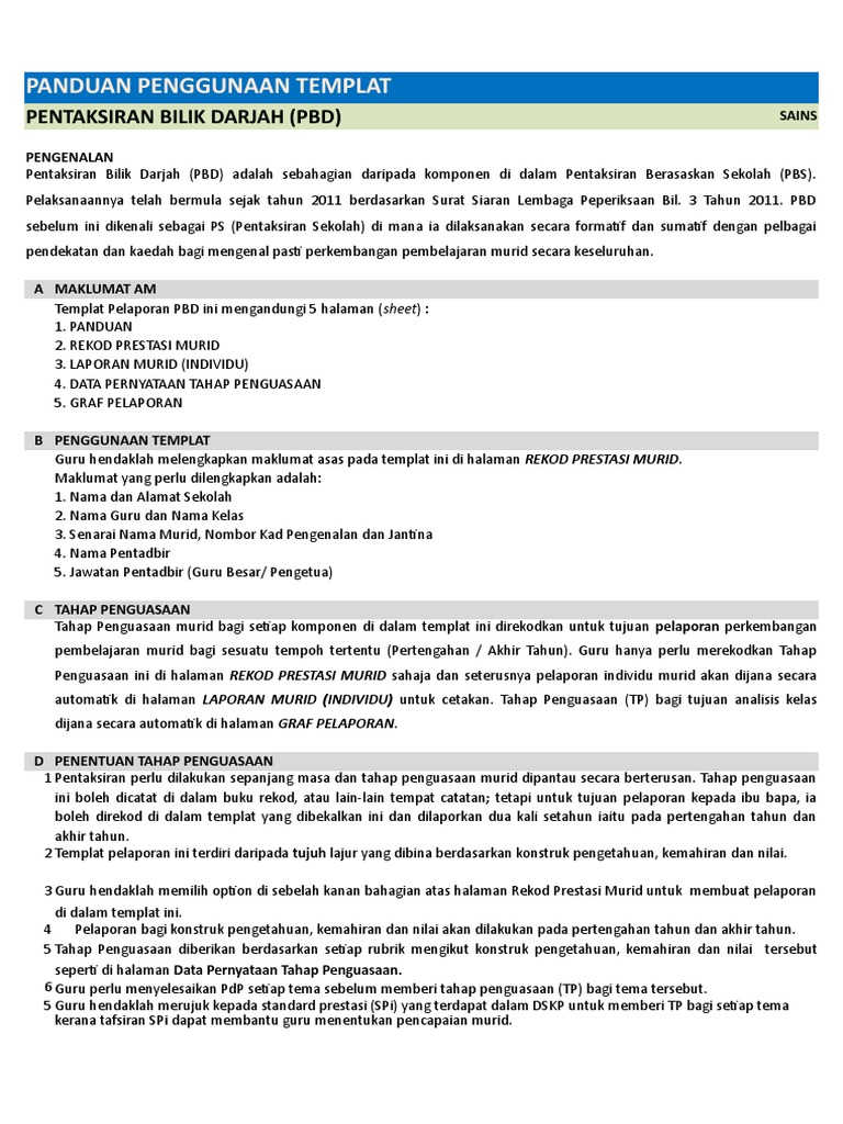 Templat Pelaporan Pentaksiran Bilik Darjah Pbd Versi 3 0 Baru Pendidik2u